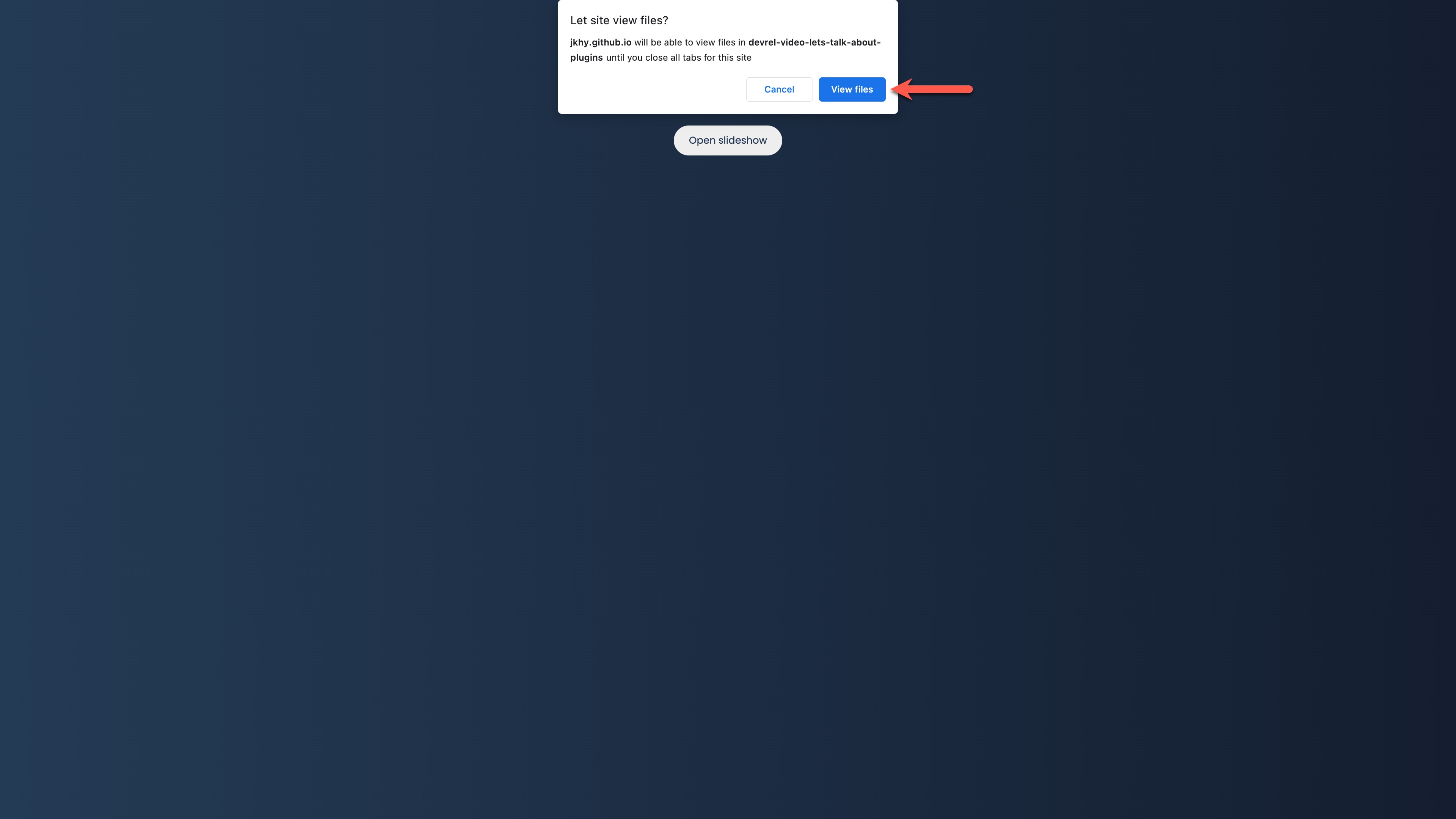 The browser displays a popup asking for permission to view files in that folder. Press the button that grants access to that folder.